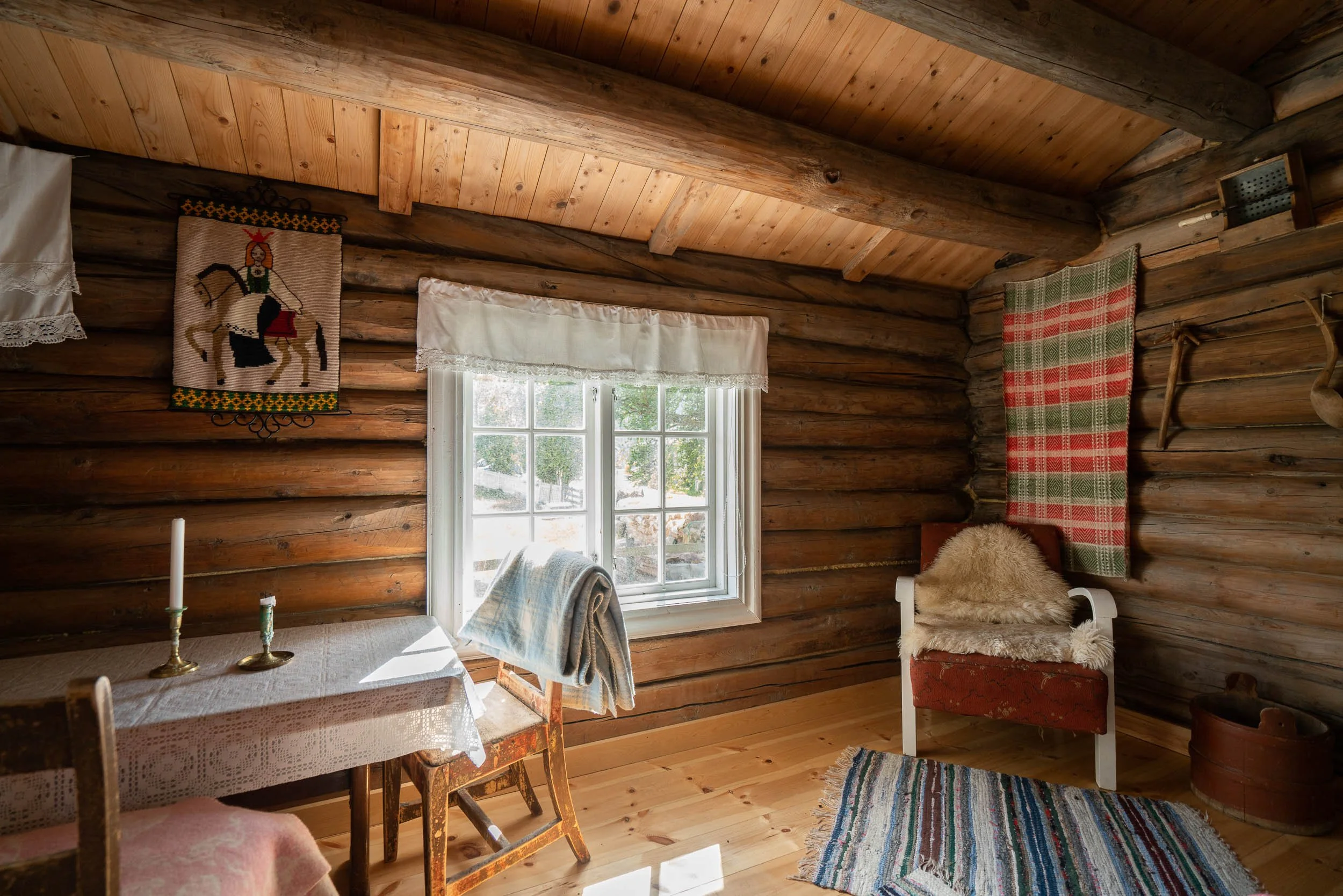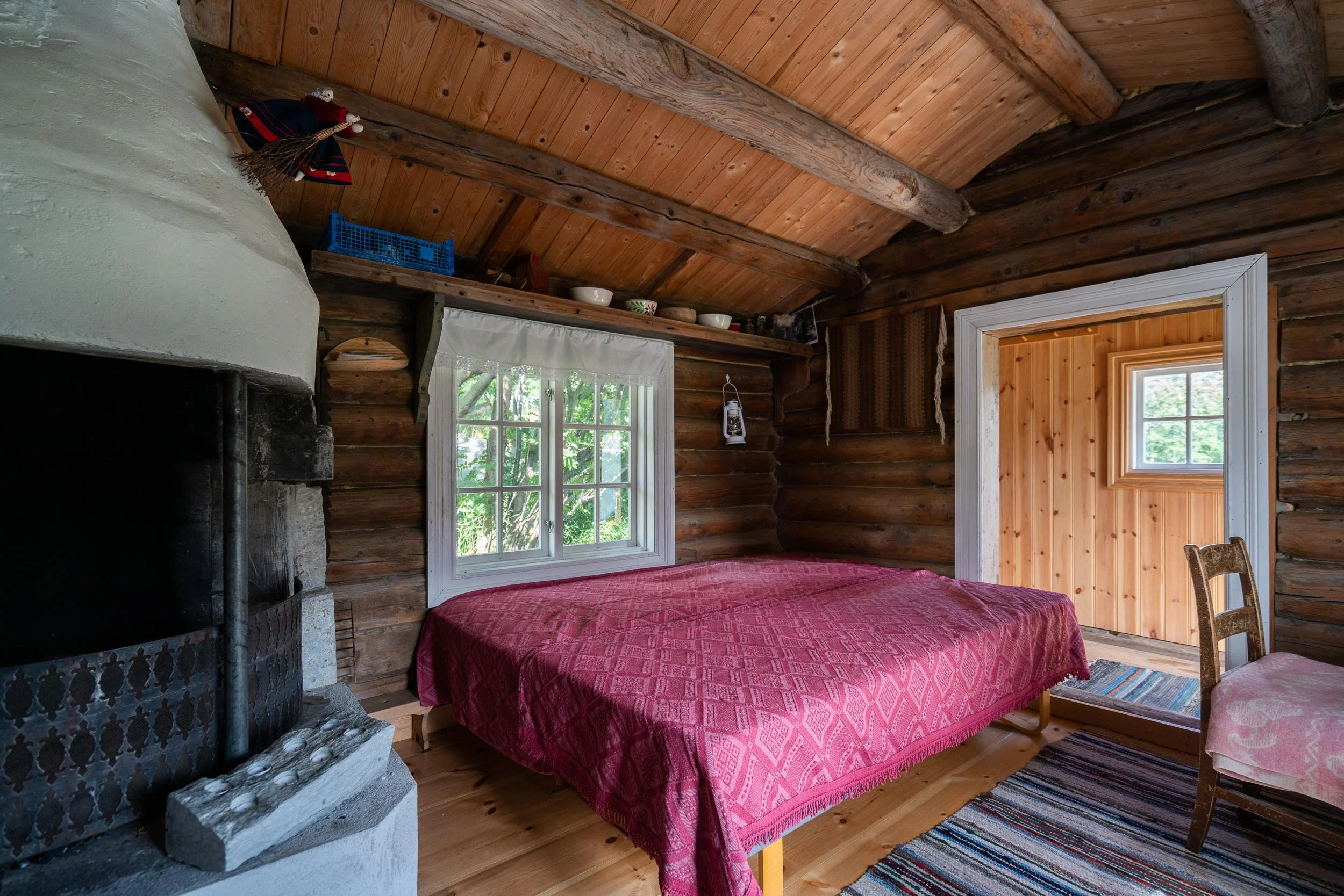 Dette trivelige rommet har fått navn etter den eldste datteren til Helene og Anton. Synnøve ble født i 1919, var lærerinne og ble nesten 100 år gammel. Det var hun som solgte Kolstad Store til Aasmund og Anne Marie i 2011. Rommet har to enkeltsenger. Det er vestvendt med lyseblått tak, blomstrete tapet og tømmervegg.